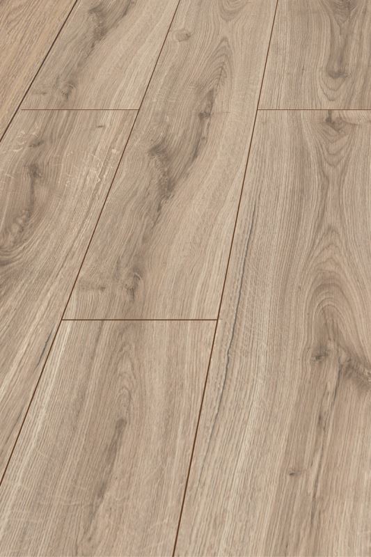 De laminaatvloer op de foto die wordt weergegeven op het beeldscherm van de smartphone, desktop of tablet kan afwijken van de originele kleur.