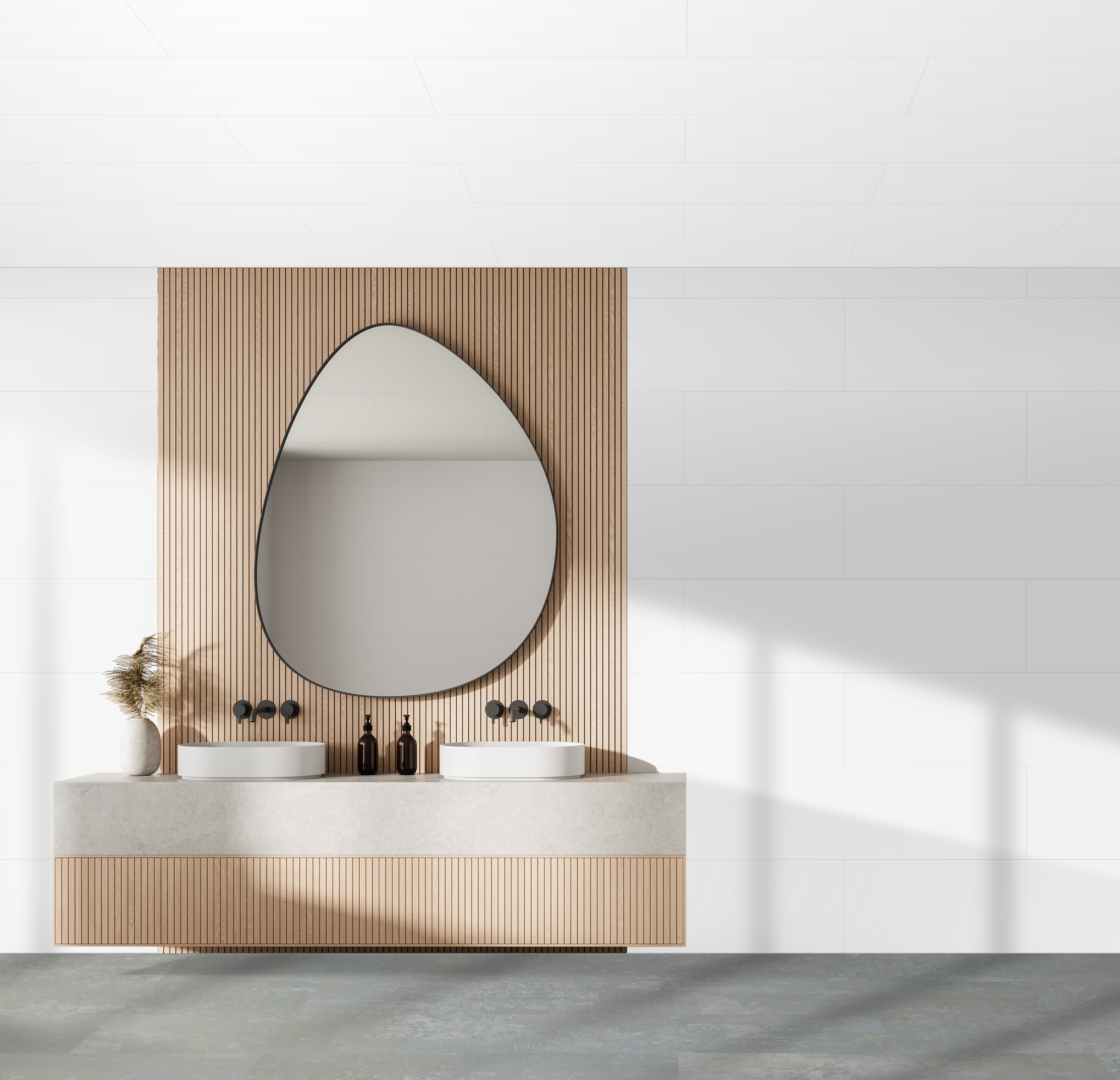 Korte panelen met dubbel kliksysteem. Bevestig aan latten of verlijm direct op wand, vloer of plafond. Ideaal voor vochtigeruimtes zoals de badkamer.