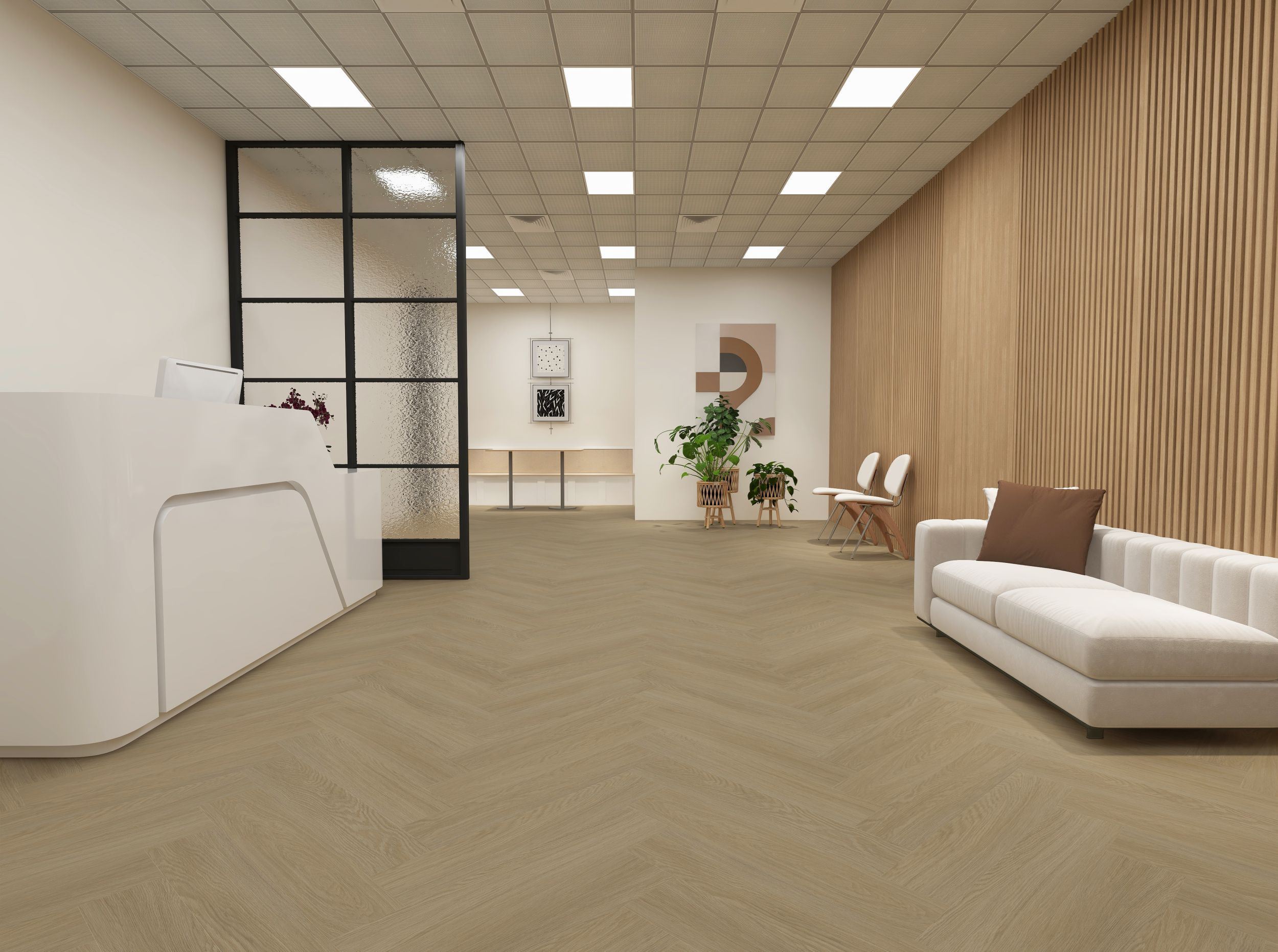 Een klassiek design dat weer helemaal van deze tijd is: visgraatvloeren die jezelf eenvoudig kan leggen door het handig clicksysteem. Op deze zachte vinylvloer kun je lekker op blote voeten lopen. Loop je op schoenen dan garanderen de geluidsabsorberende kwaliteiten weinig loopgeluid.