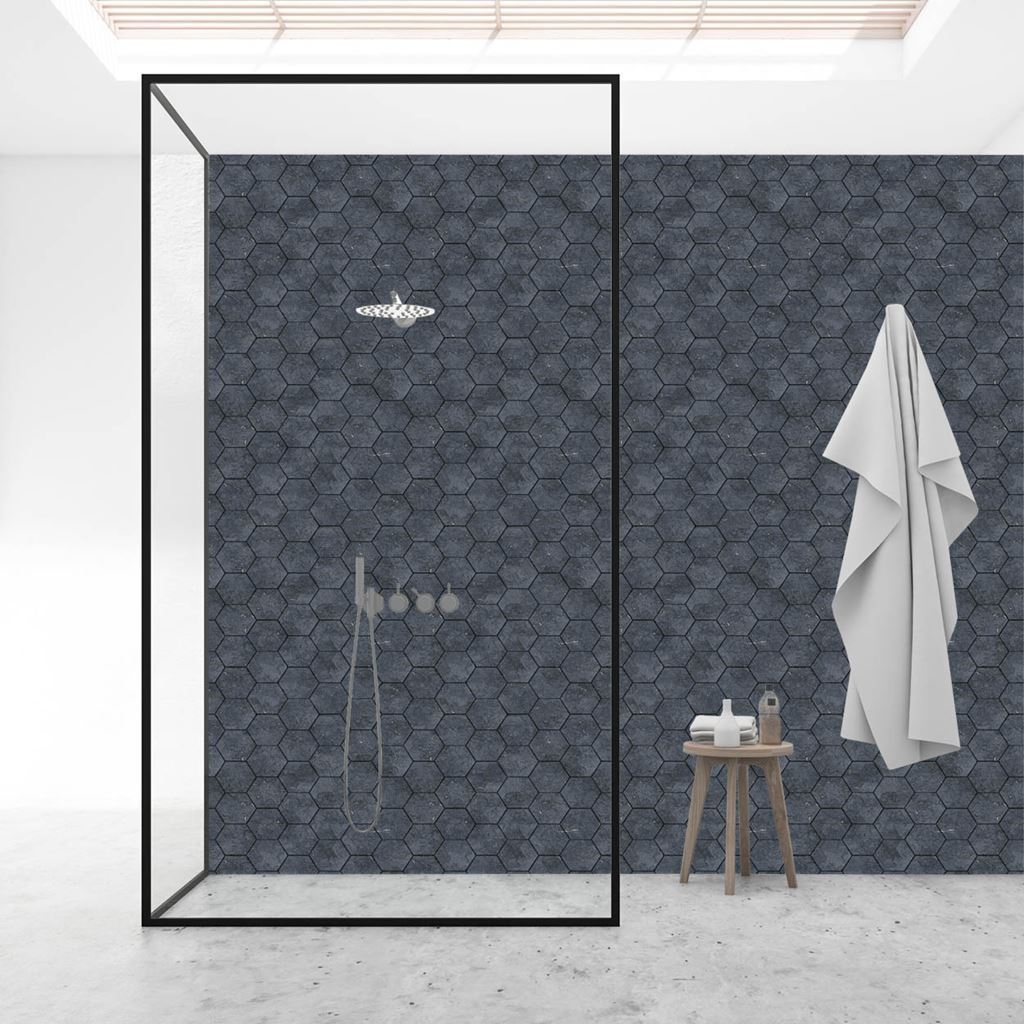 HDM aqua step SPC click 'N screw wandpaneel decor digitale print basalt honeycomb tile 4,5mm XL (1 pak bestaat uit 2 panelen van 48,2x260,5cm totale afmeting wand 96,4x260,5cm=2,511m²)