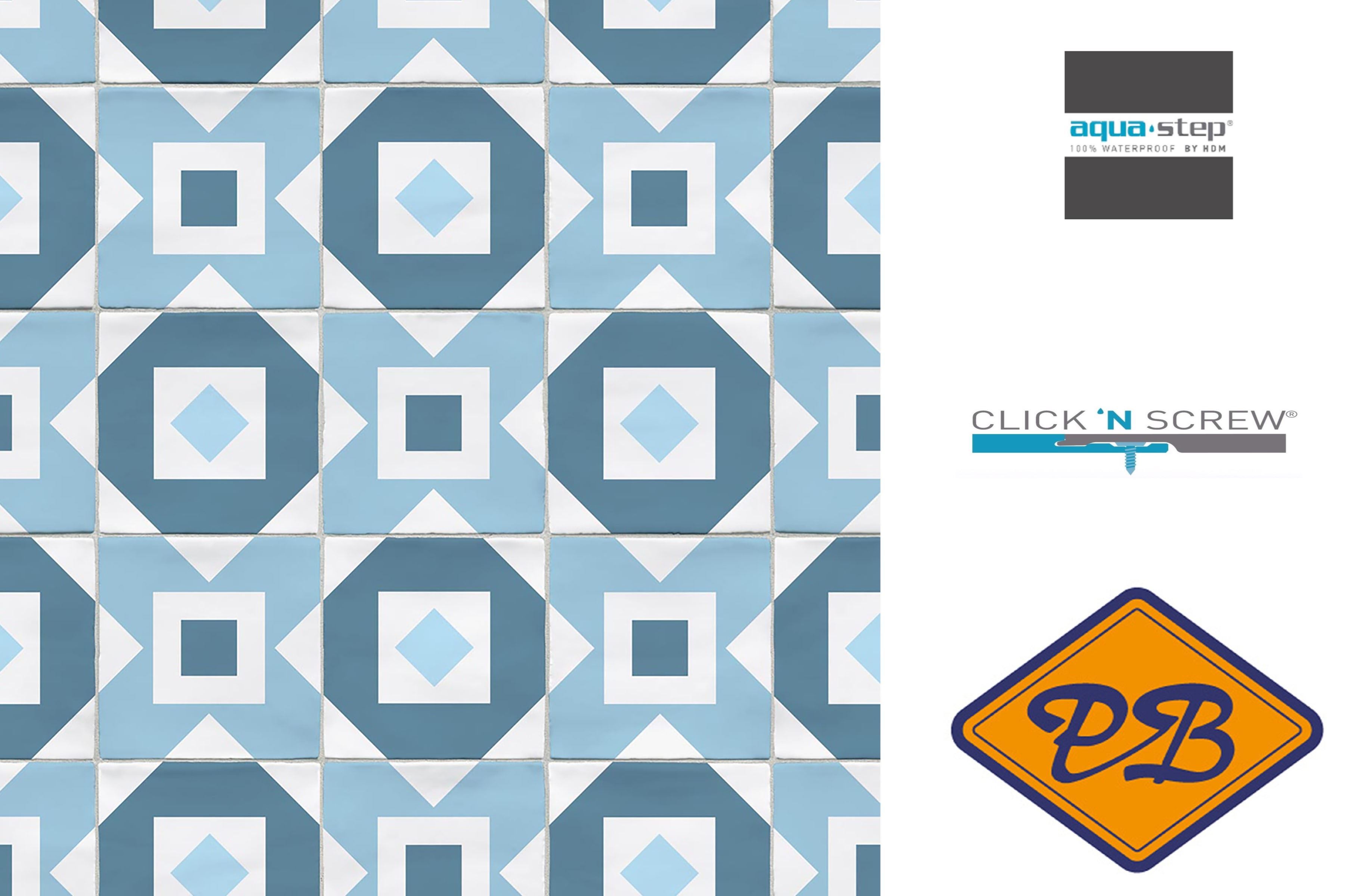 HDM aqua step SPC click 'N screw wandpaneel decor digitale print retro tile blue 4,5mm XL