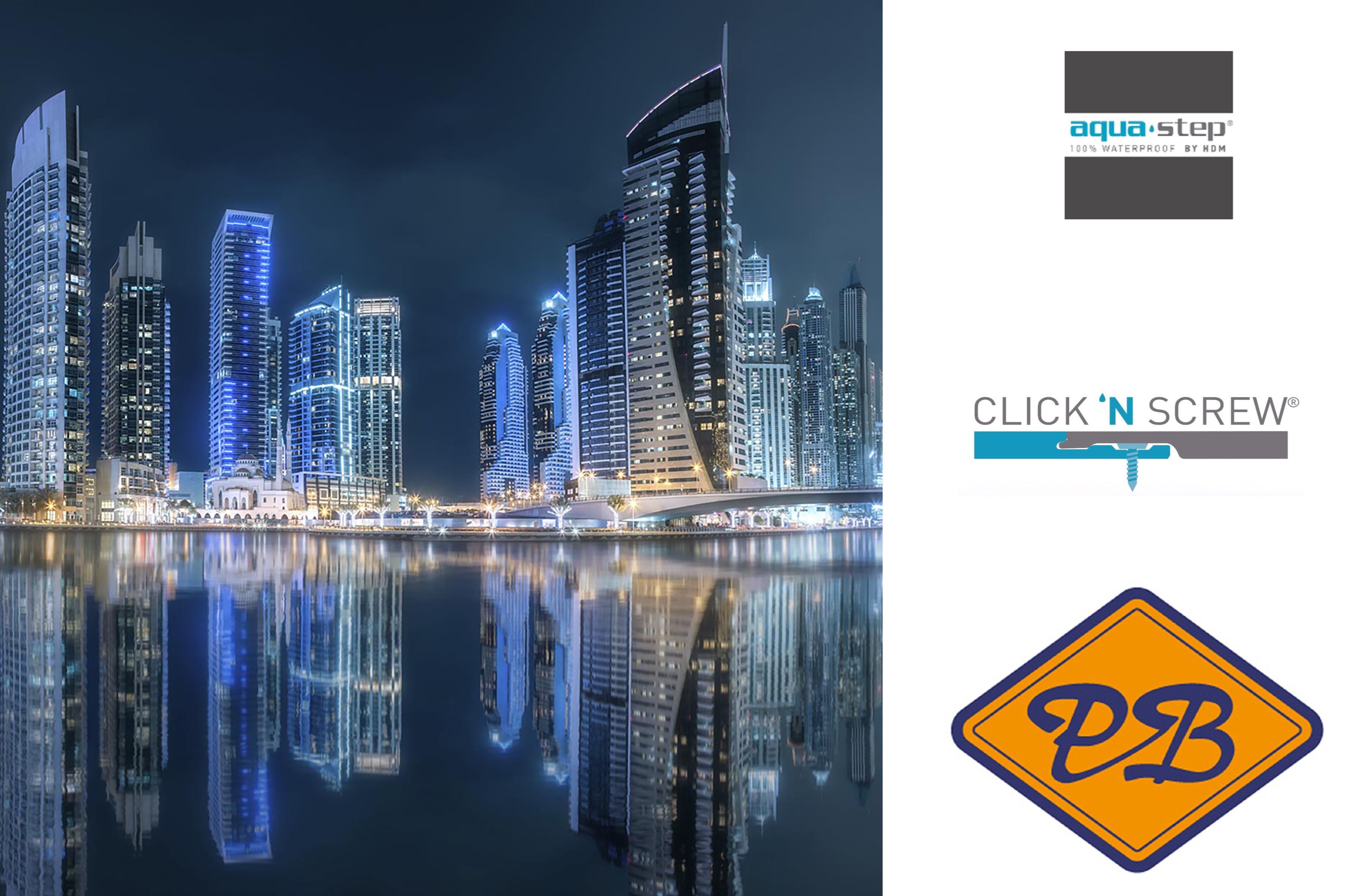 HDM aqua step SPC click 'N screw wandpaneel visuals digitale print Dubai marina by night 4,5mm XL