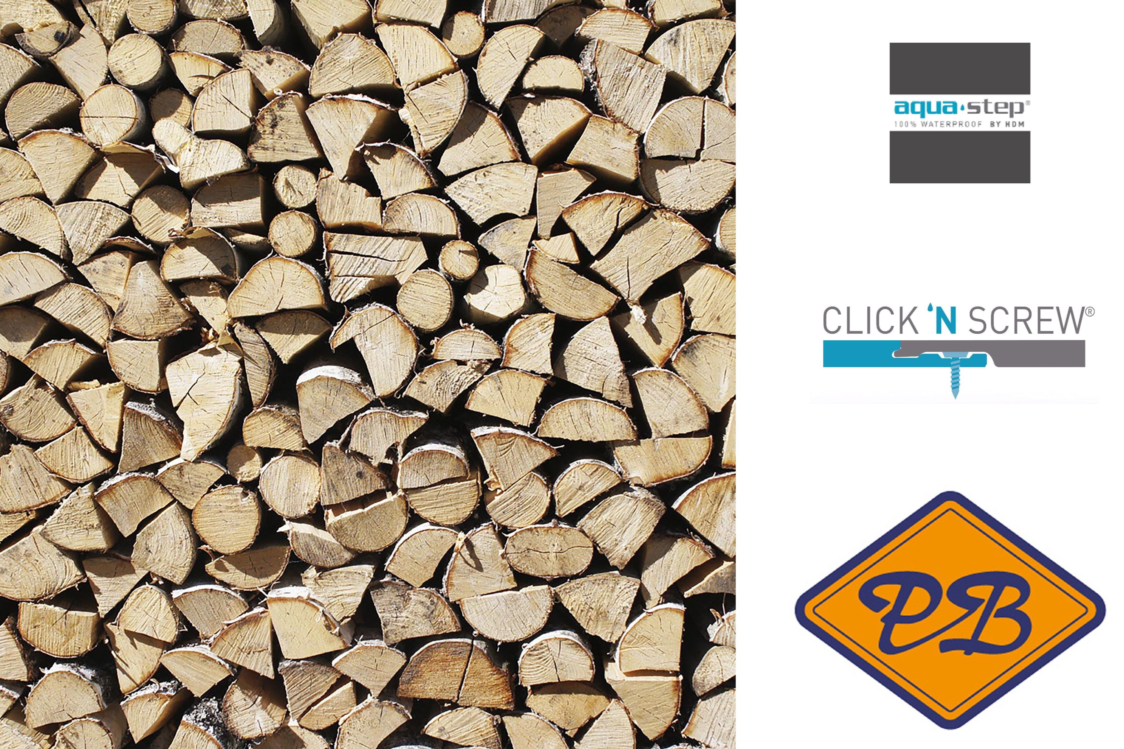 HDM aqua step SPC click 'N screw wandpaneel visuals digitale print pile of wood 4,5mm XL