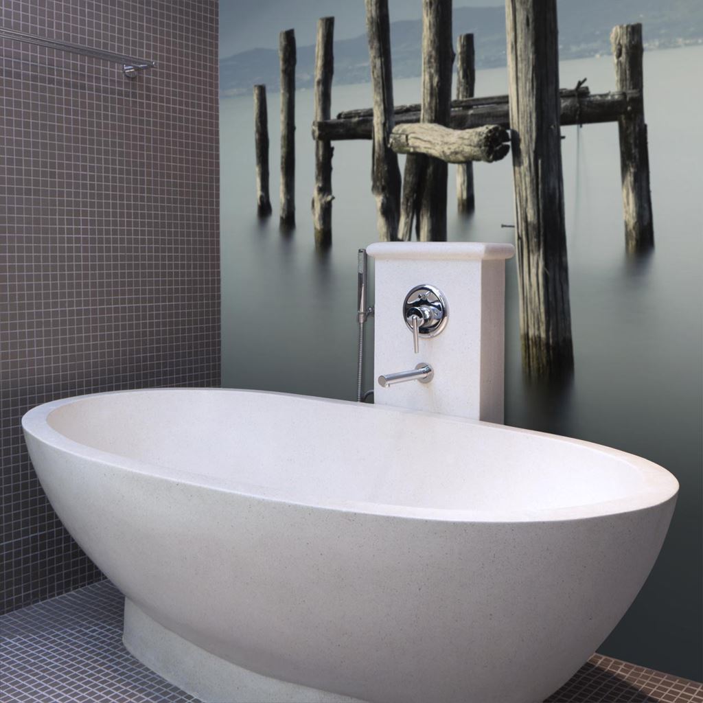 De afbeeldingen worden gedrukt op Aqua step XL platen die beschikken over een rigide, massieve 4,5mm SPC basisplaat, deze is waterproof, stootvast, stabiel en sterk. Omdat de panelen naadloos aansluiten, kan er met een innovatieve digitale techniek een doorlopende afbeelding op worden gedrukt. Door het unieke laksysteem dat uit meerdere lagen bestaat, is de toplaag extreem duurzaam. De keuze is grenzeloos, een bijzondere foto, hout-, marmer- of steeneffect, dus creëer uw eigen unieke sfeer! Montage met Aqua-Step Hybride polymeerlijm direct tegen de wand of op latten geschroefd.