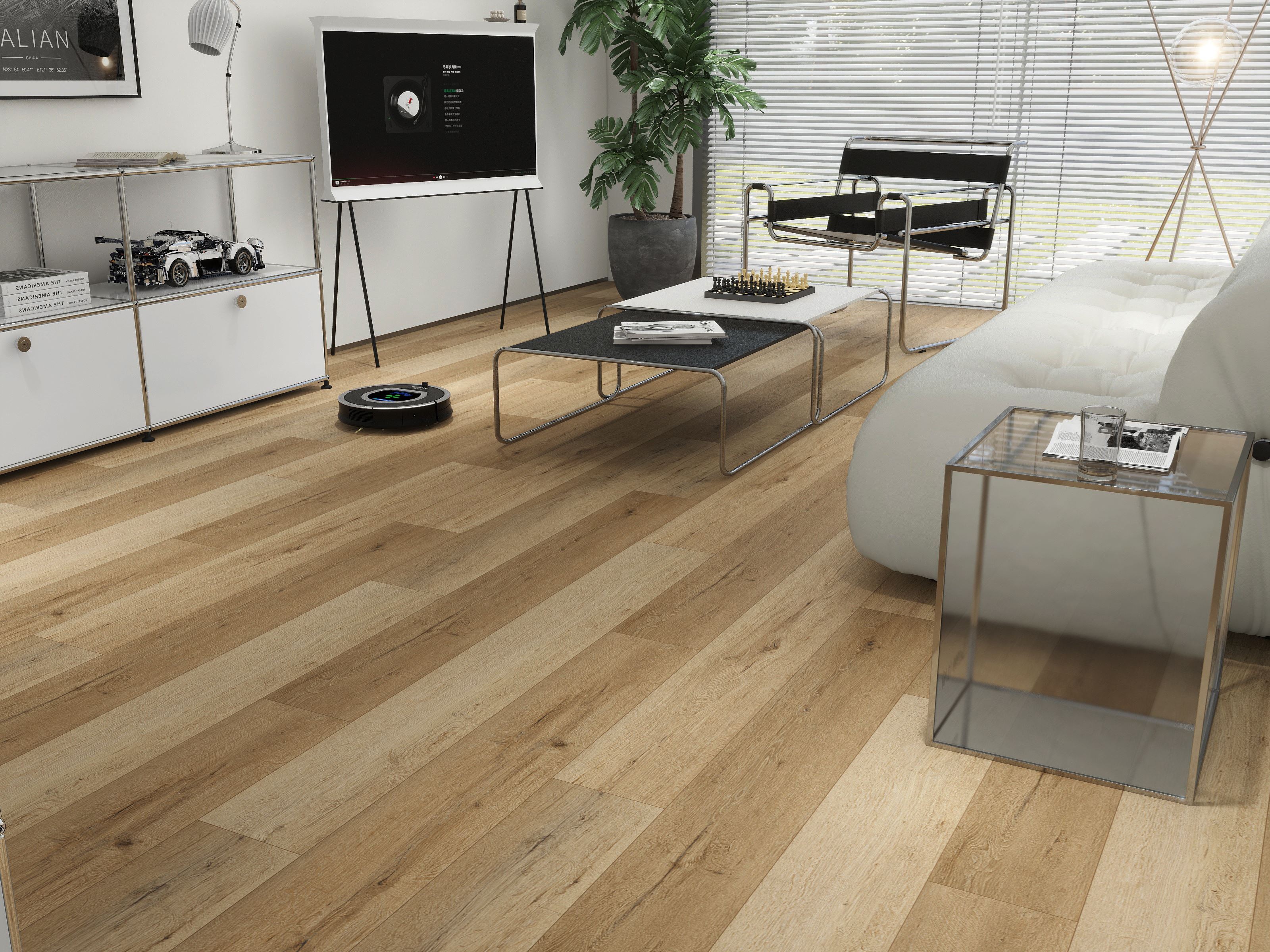 SPC vinyl vloer op de foto die wordt weergegeven op het beeldscherm van de smartphone, desktop of tablet kan afwijken van de originele kleur.