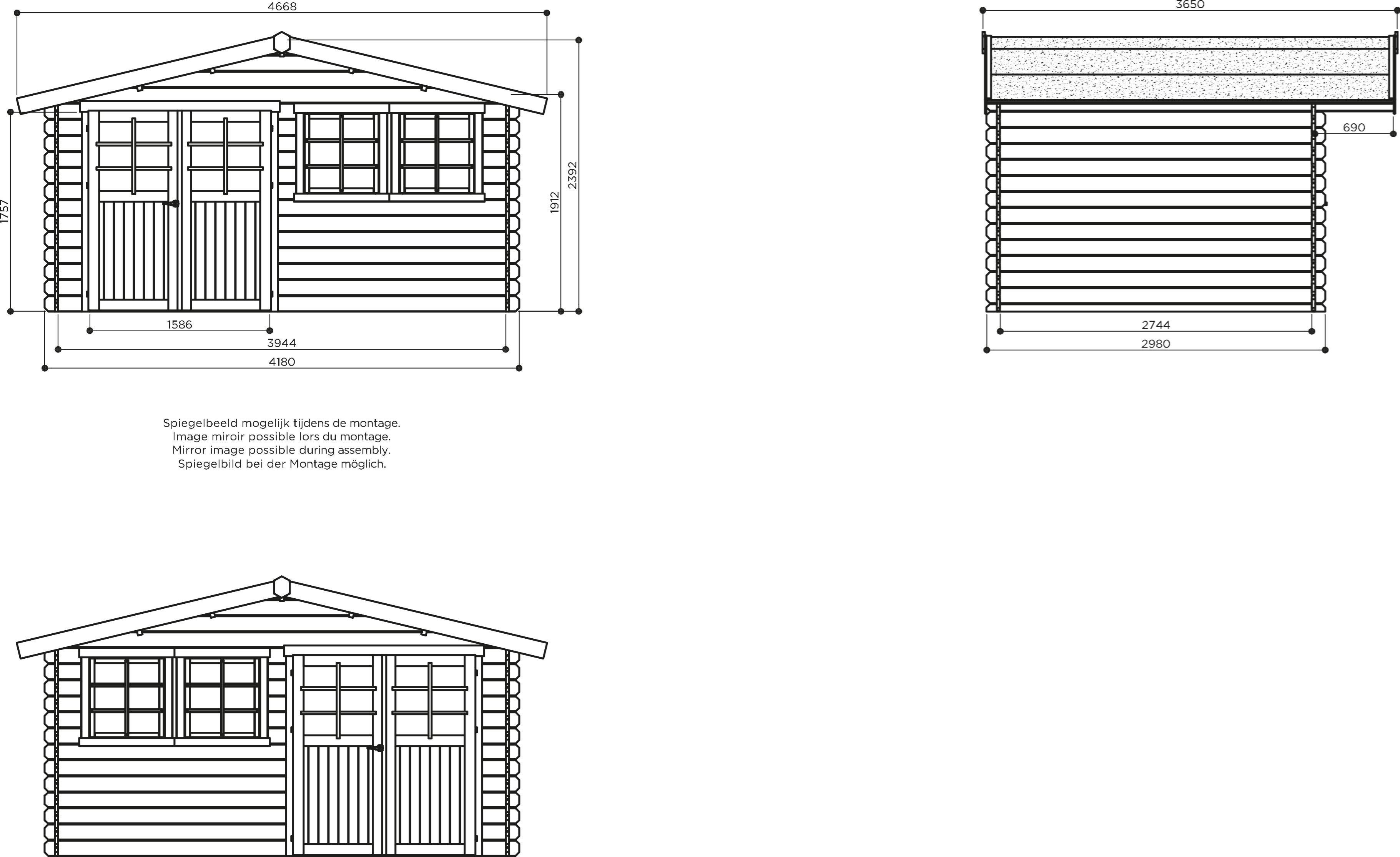 Opstelmaat breedte (exclusief dakoverstek) : 418cmcm