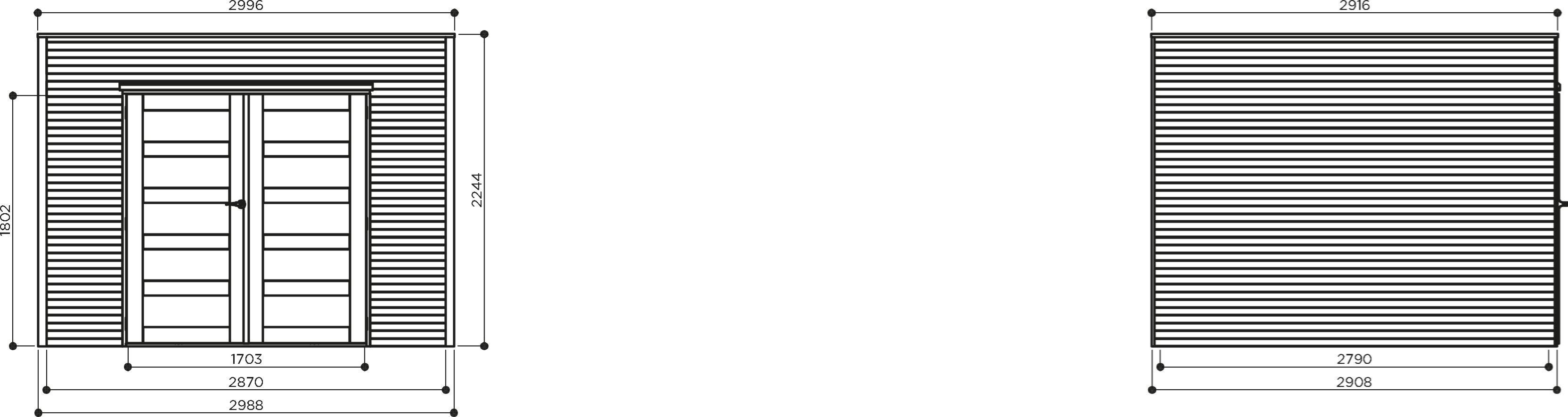 Opstelmaat breedte (exclusief dakoverstek) : 298,8cm