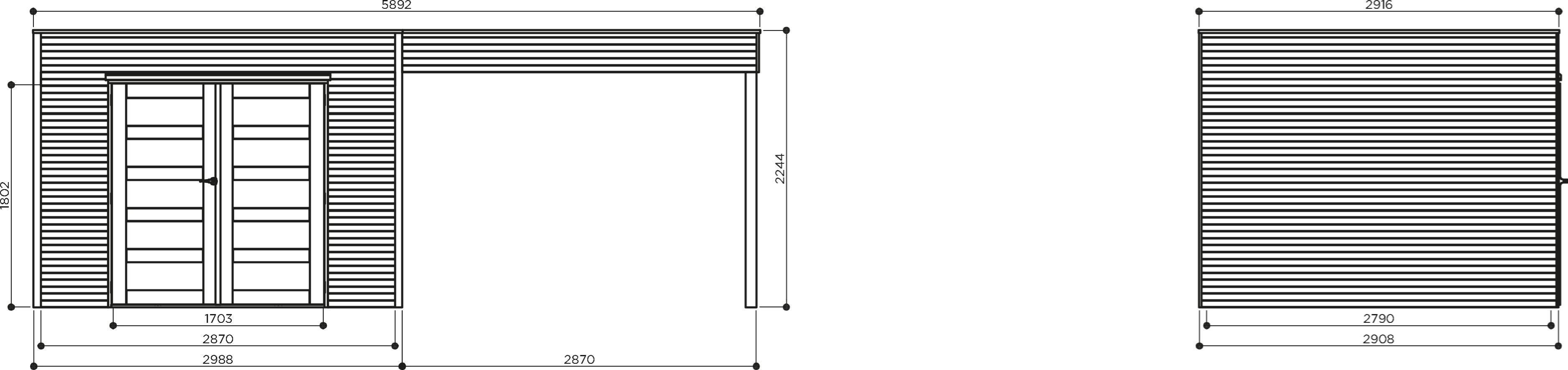 Opstelmaat diepte (exclusief dakoverstek) : 290,8cm