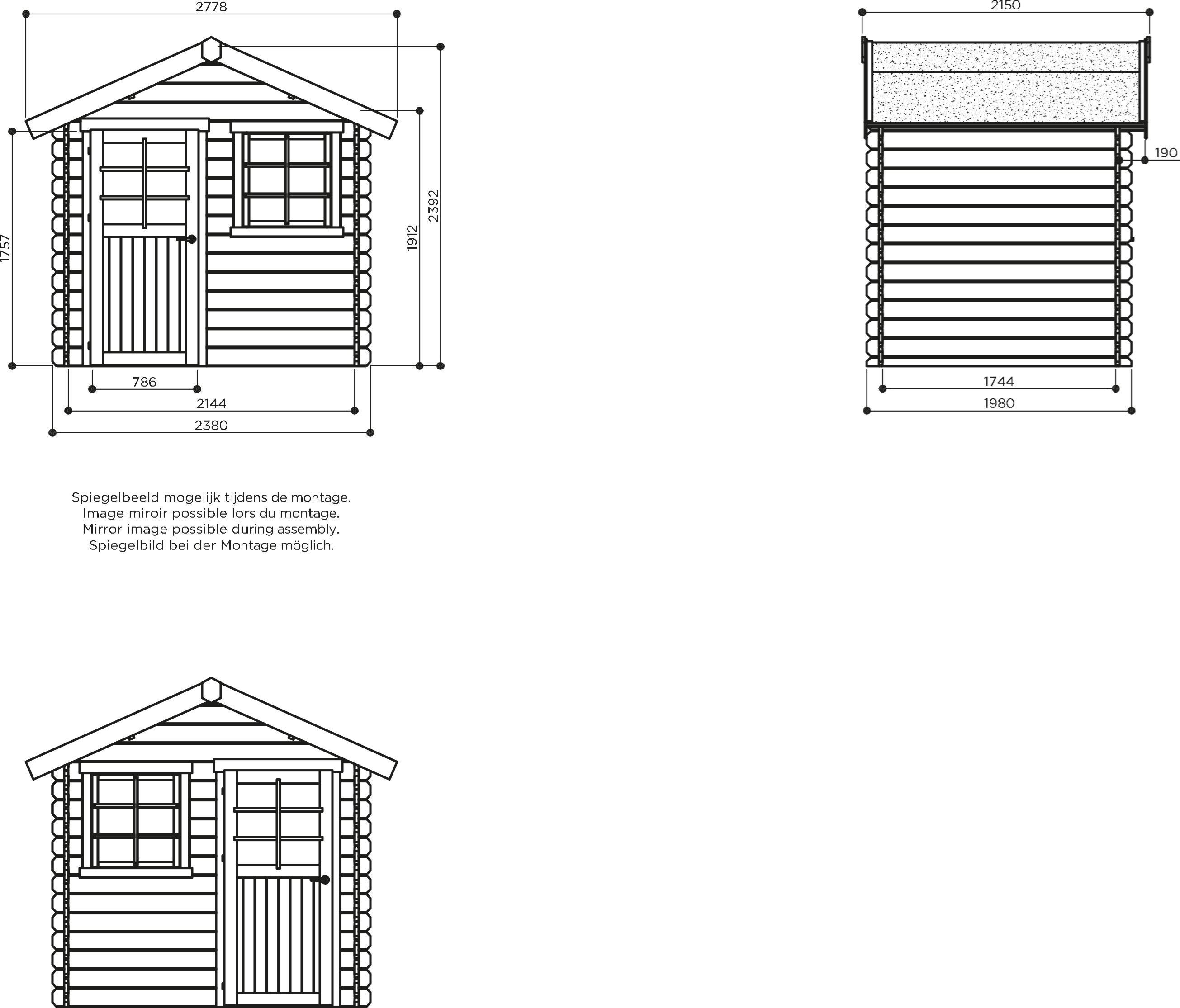 Opstelmaat breedte (exclusief dakoverstek) : 238cm