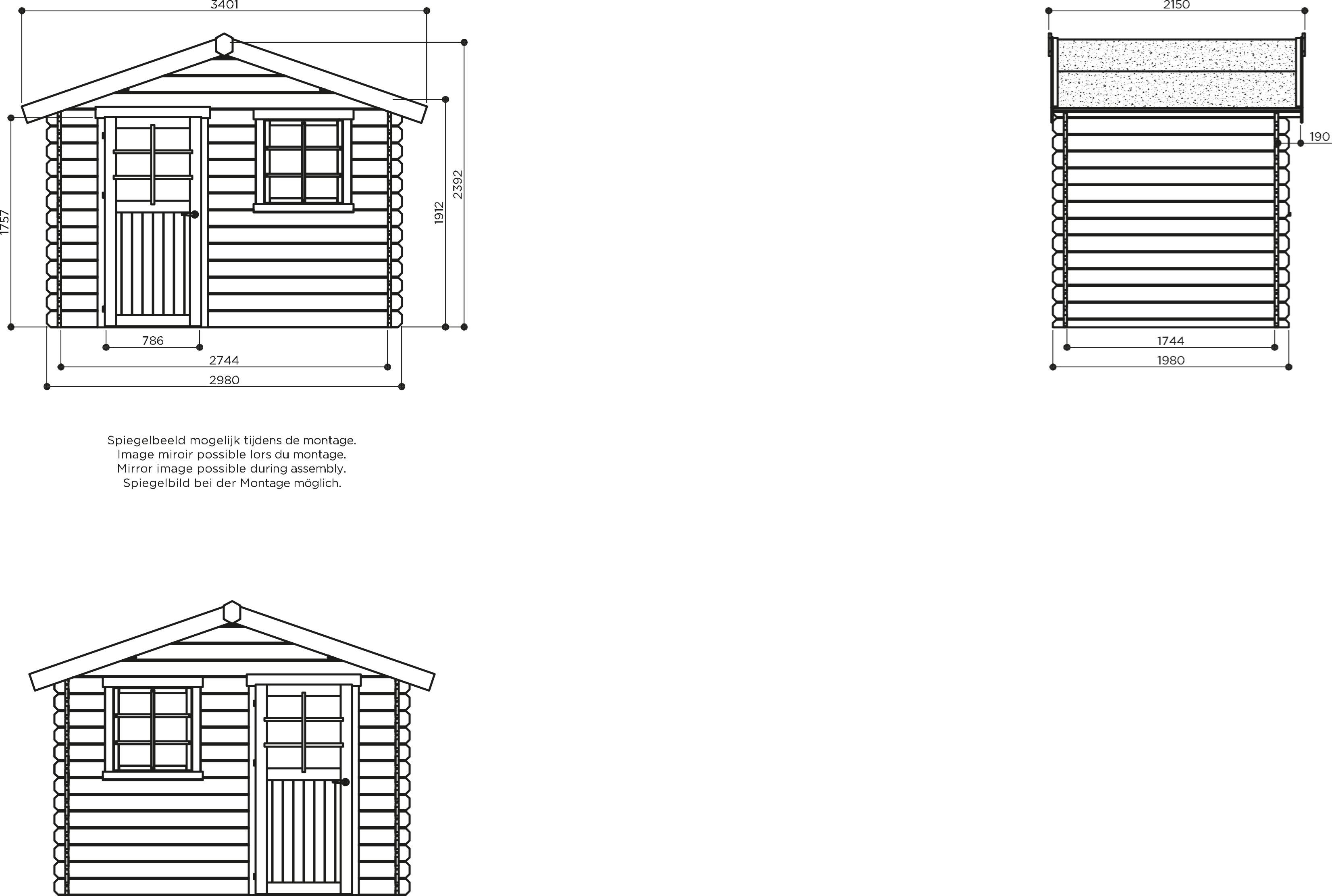 Opstelmaat breedte (exclusief dakoverstek) : 298cm