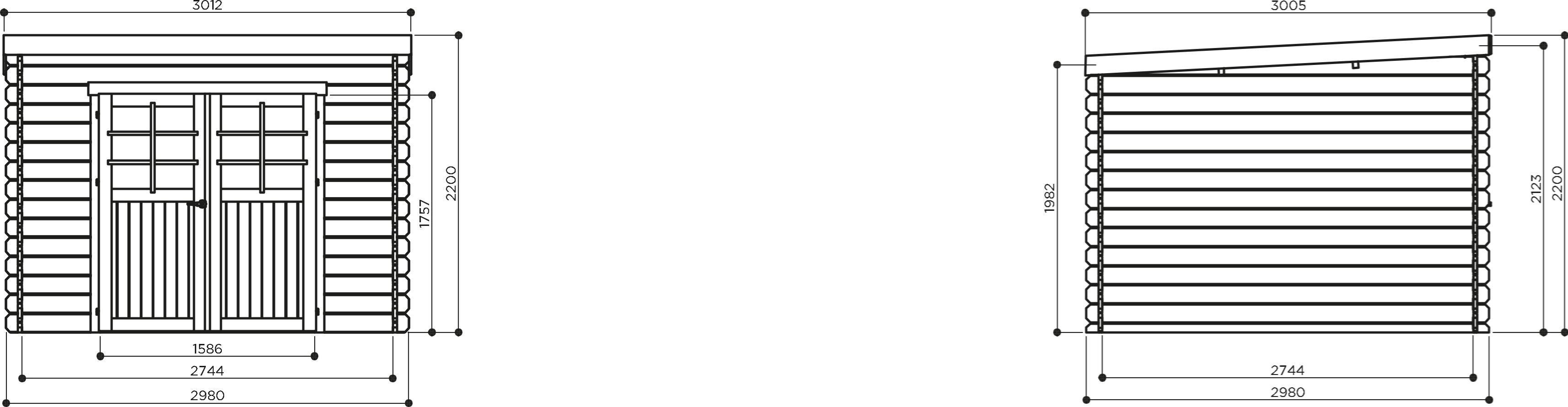 Opstelmaat diepte (exclusief dakoverstek) : 298cm