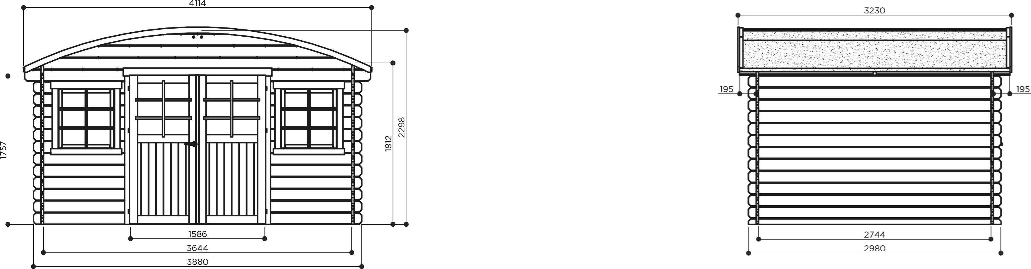 Solid vuren blokhut 28mm S8333-1 Dainville II autoclave verduurzaamd afmeting 388x298cm