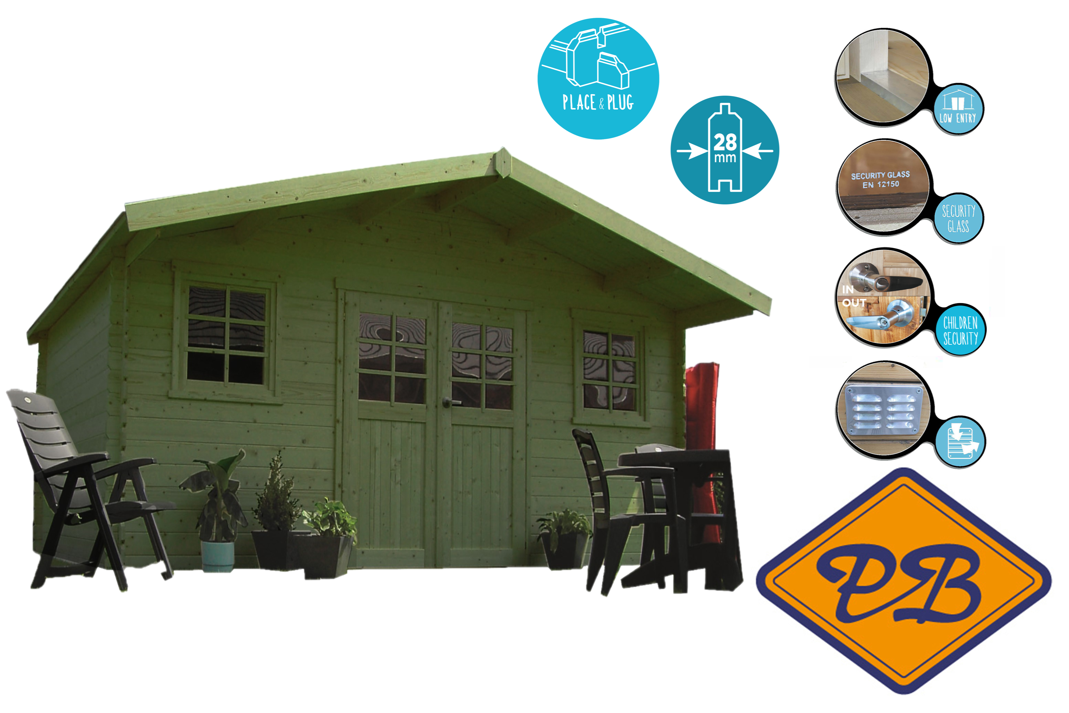 Rubber isolatieband: Nee, wordt niet standaard meegeleverd. Wij adviseren de blokhut op rubberband te plaatsen hierdoor wordt de levensduur verlengd. De waterkeringsband voorkomt optrekkend vocht in de zijwanden. Tegen meerprijs bij gerelateerde producten onderaan te bestellen. Voor deze uitvoering heeft U 3 rollen nodig.
