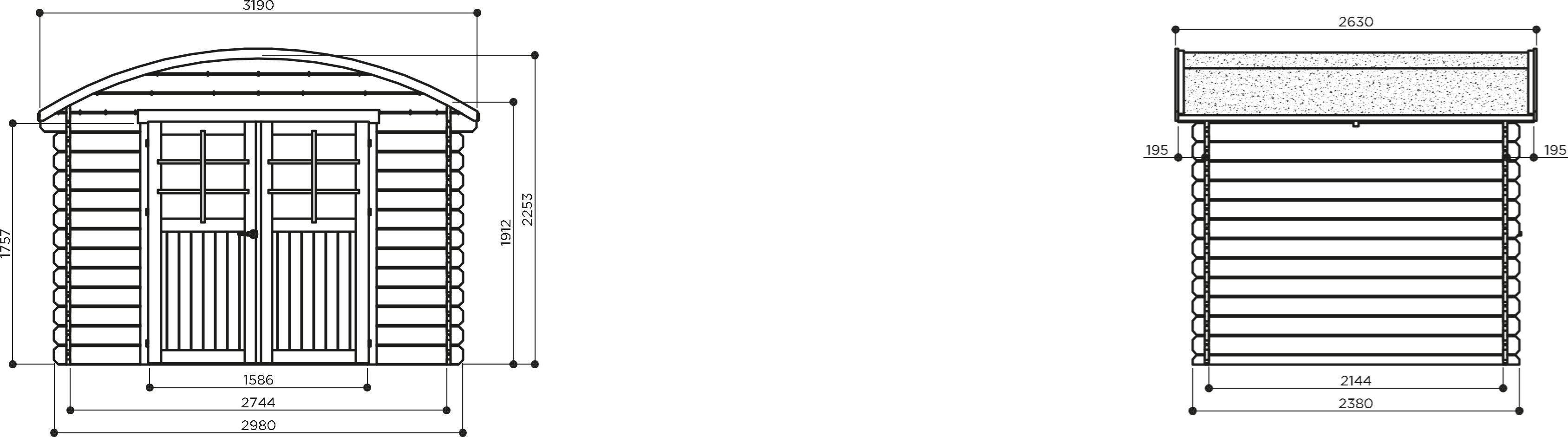 Opstelmaat diepte (exclusief dakoverstek) : 238cm