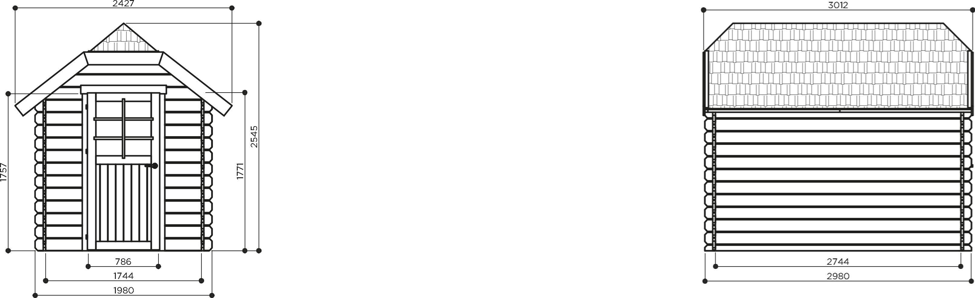 Opstelmaat diepte (exclusief dakoverstek) : 298cm
