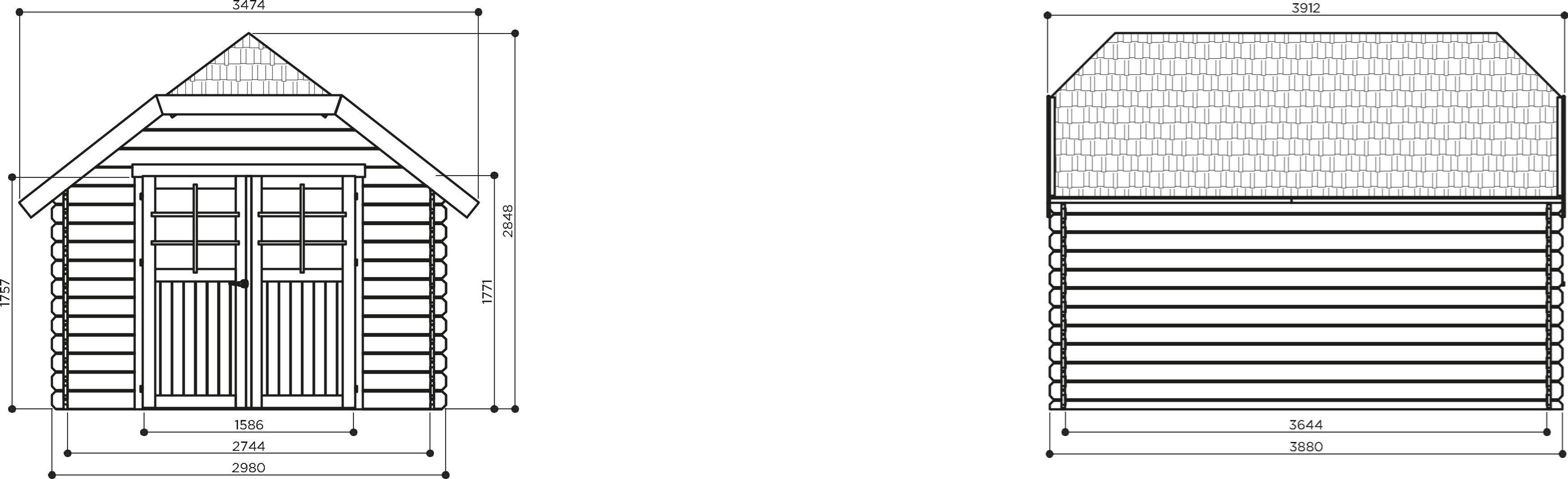 Opstelmaat diepte (exclusief dakoverstek) : 388cm