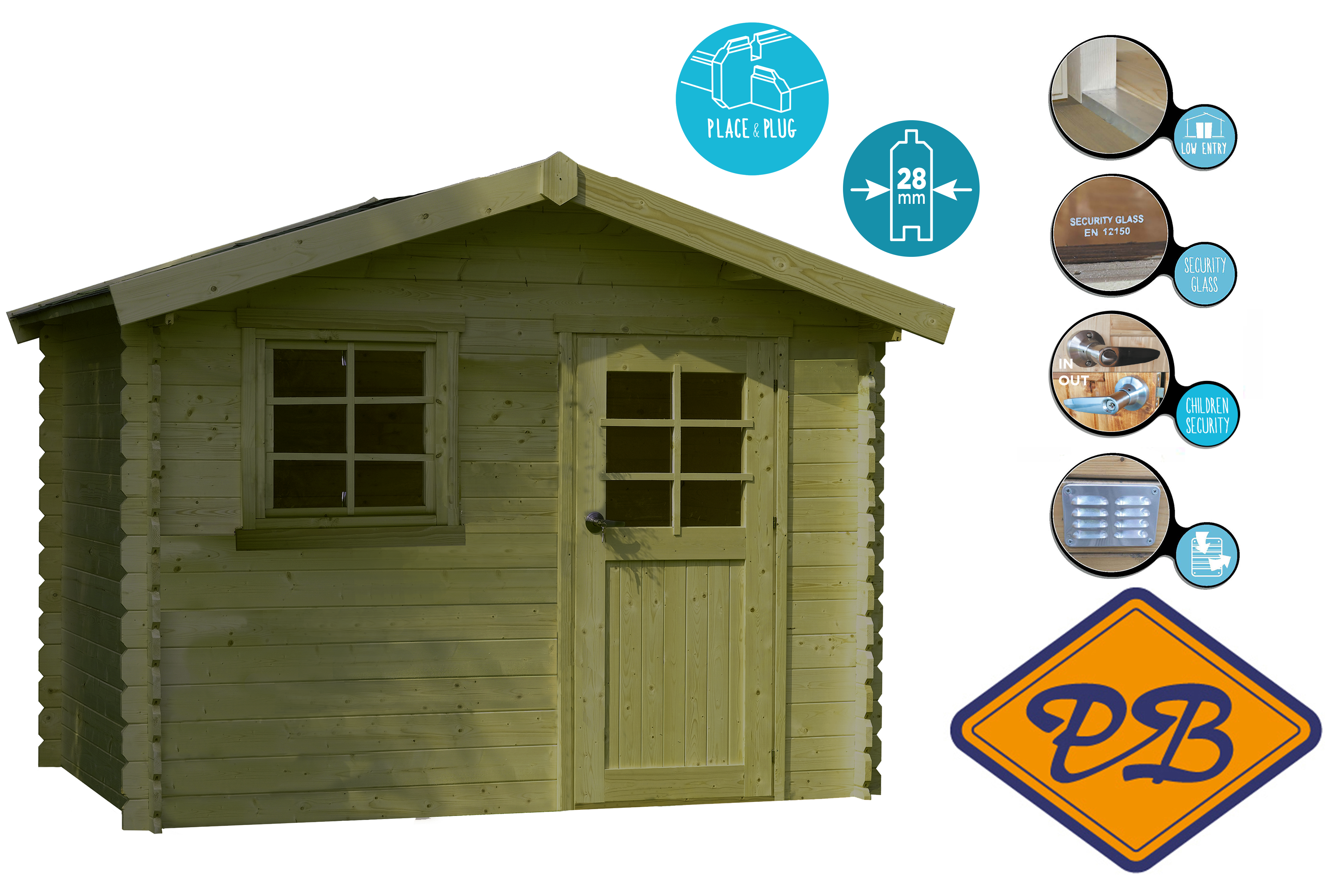 Rubber isolatieband: Nee, wordt niet standaard meegeleverd. Wij adviseren de blokhut op rubberband te plaatsen hierdoor wordt de levensduur verlengd. De waterkeringsband voorkomt optrekkend vocht in de zijwanden. Tegen meerprijs bij gerelateerde producten onderaan te bestellen. Voor deze uitvoering heeft U 2 rollen nodig.