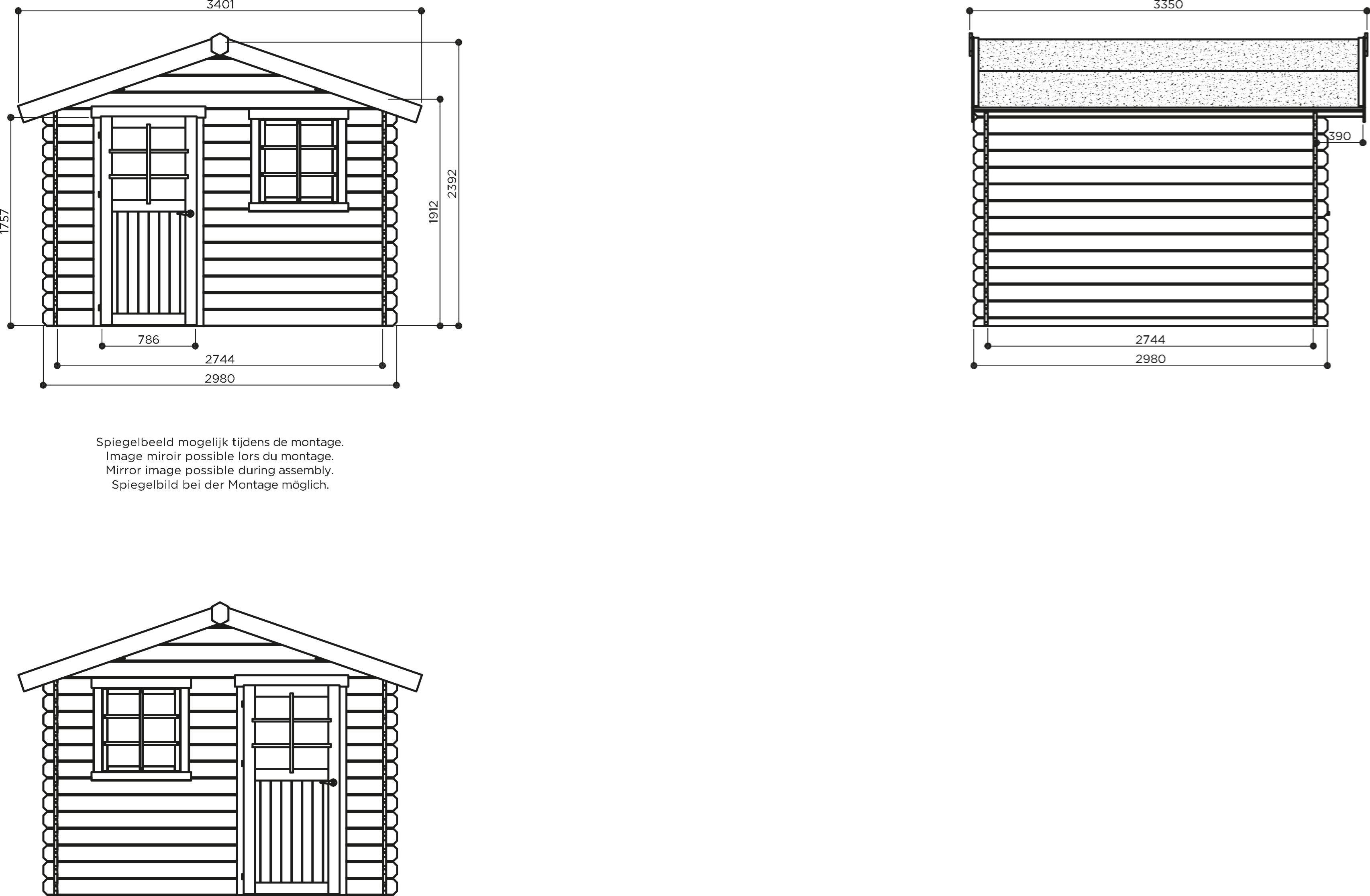 Opstelmaat breedte (exclusief dakoverstek): 298cm