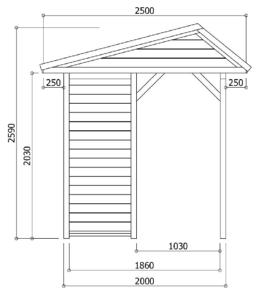 Opstelmaat diepte (exclusief dakoverstek) : 200cm