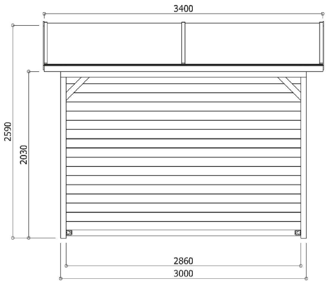 Opstelmaat breedte (exclusief dakoverstek) : 300cm