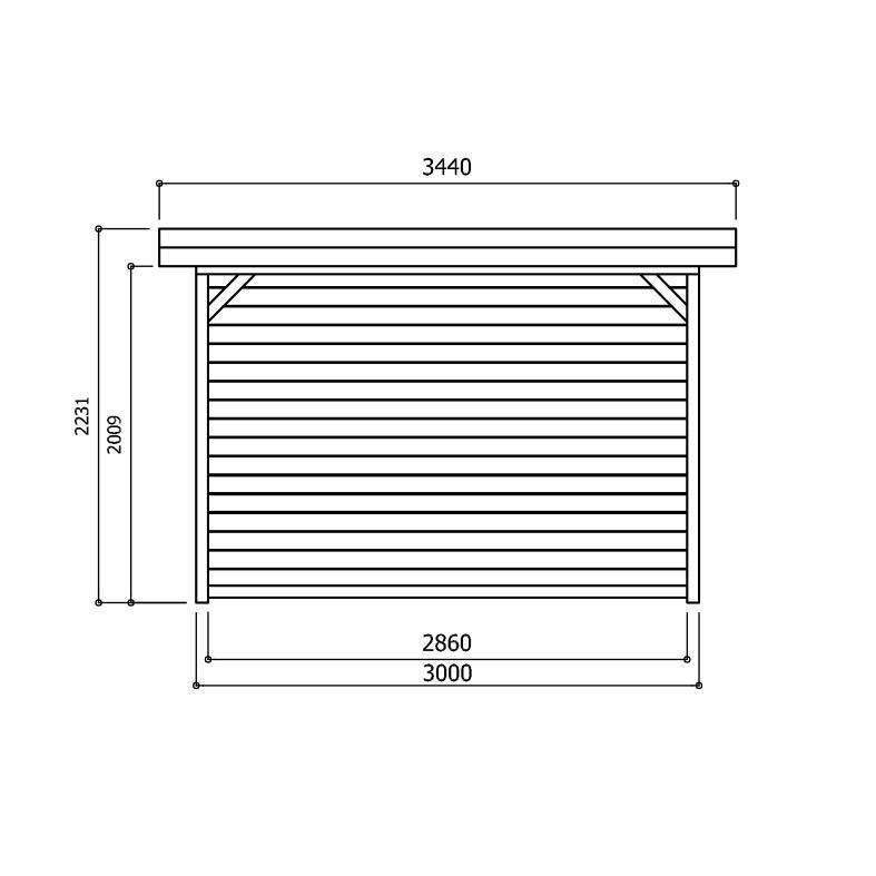 Opstelmaat breedte (exclusief dakoverstek) : 300cm