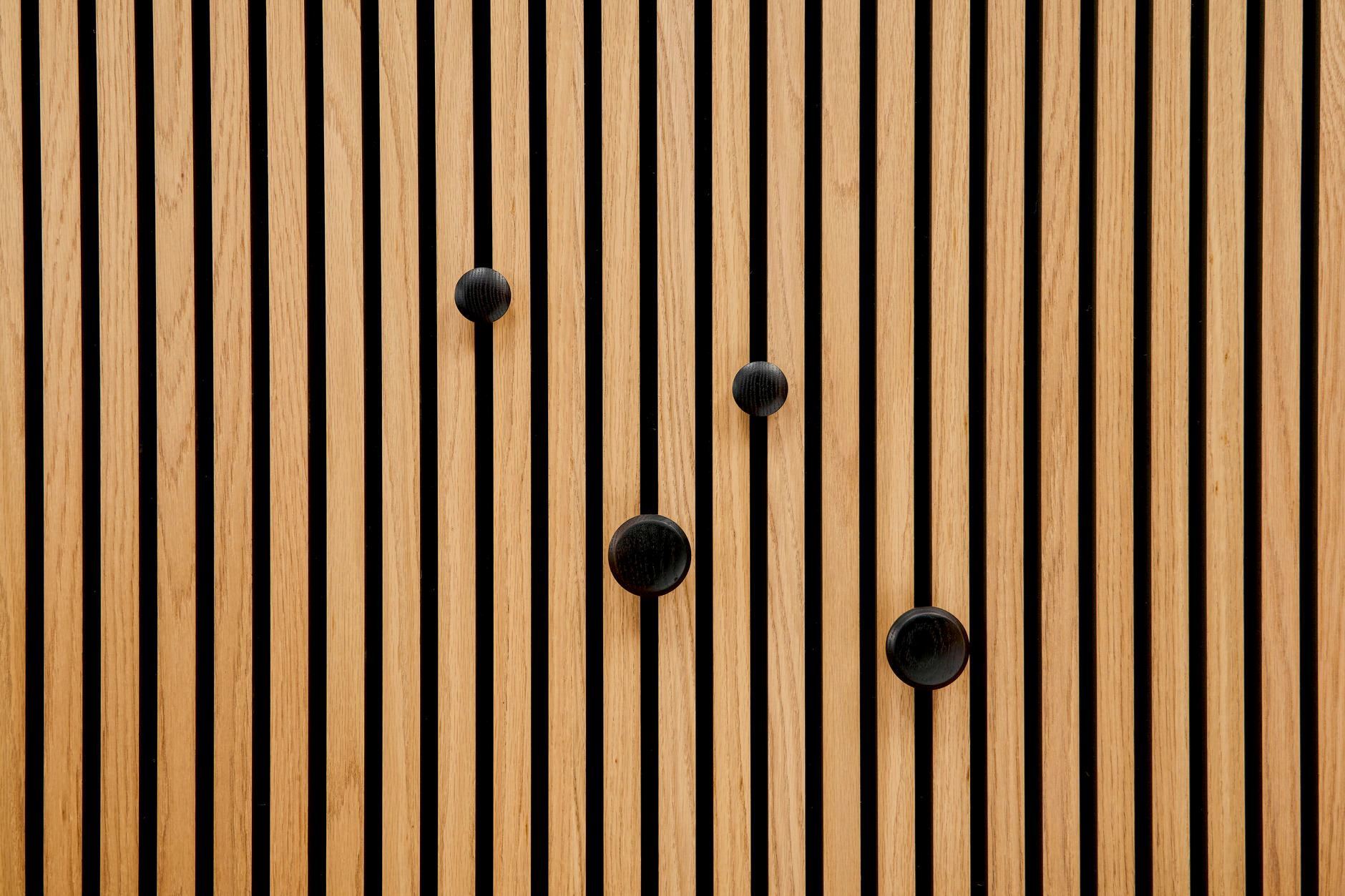 Bjorn is speciaal ontworpen voor Ter Hürne uniquedesign akoustiek 3D wand-en plafondpanelen. De zwarte houten ronde knop bestaat uit een set van 2 stuks rond 40mm + 2 stuks rond 60mm. En zijn de ideale ophangoplossing voor paraplu, tassen etc. En worden geleverd incluisef bevestigingsmaterialen.