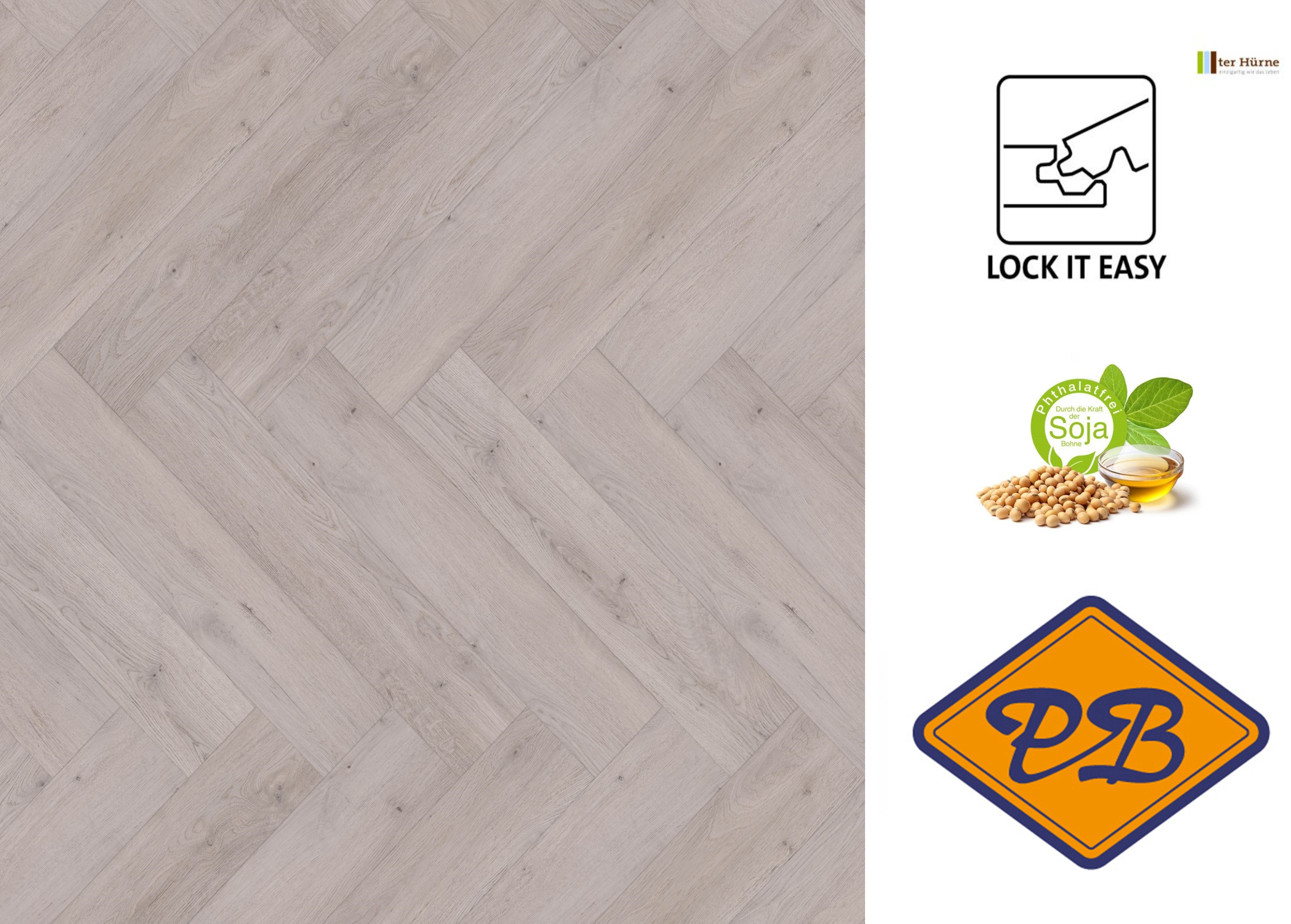 ✓ De perform visgraatstrook collectie wordt middels een lijmloze lock it easy klik systeem zwevend geplaatst;