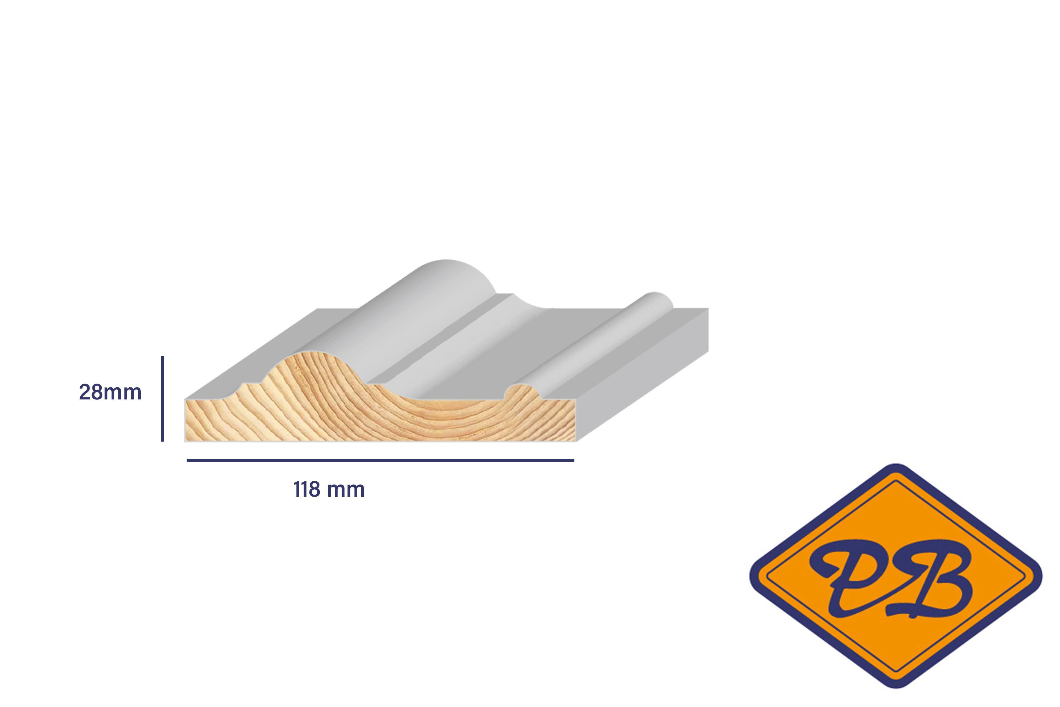 - Ztyl grenen puilijst wit gegrond 28x118mm